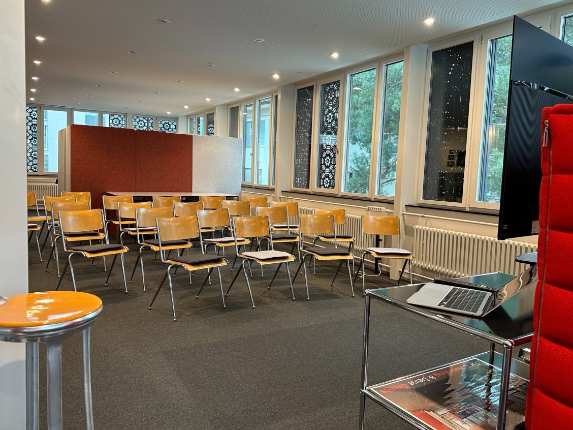 Der Raum kann dank variabler Möblierung nach Deinen Wünschen hergerichtet werden. So wird Deine Breakout-Session, Dein Kreativ-Workshop, Kurs, Vortrag oder Ausstellung ein voller Erfolg!